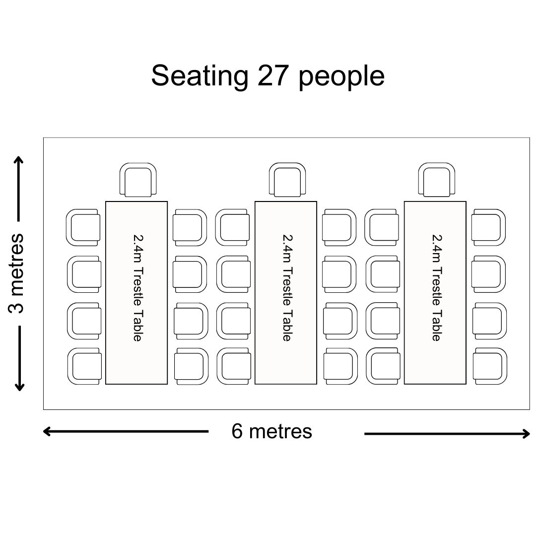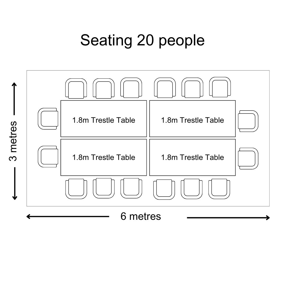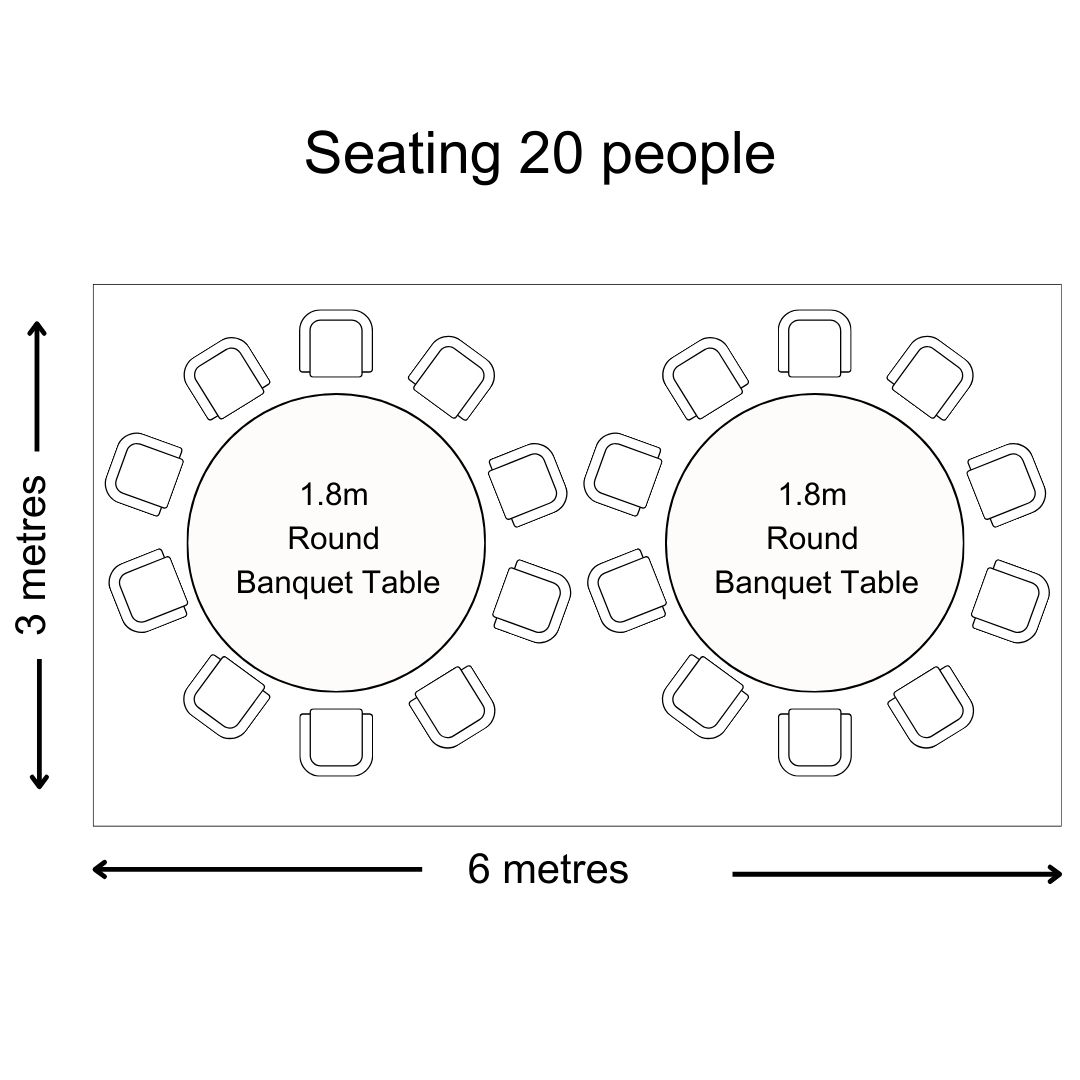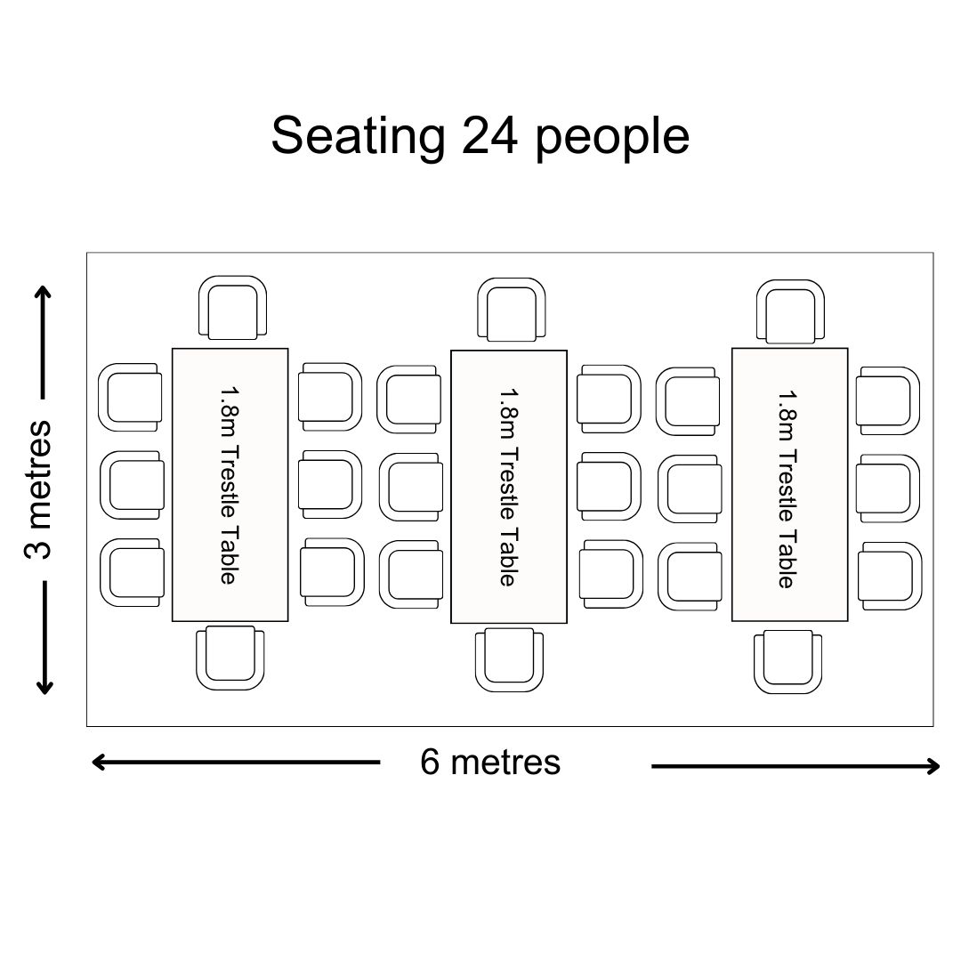 Our 3mx6m Pop up Marquee with White Roof hire can accommodate 16 people seating or 24 people standing.