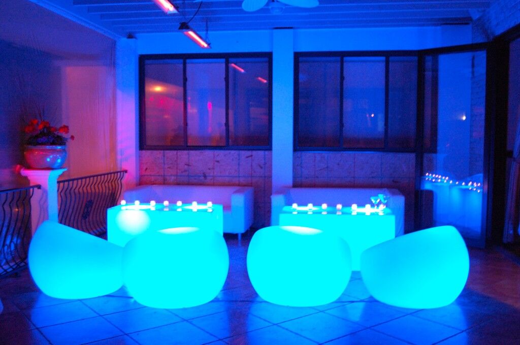 All glow furniture hire is battery powered, so there is no need to run lengthy power leads. The batteries last up to approximately 6-8 hours. Each glow piece is operated by a remote control which has multiple settings of colour control and style. Our glow furniture is easy to operate and light weight to carry.