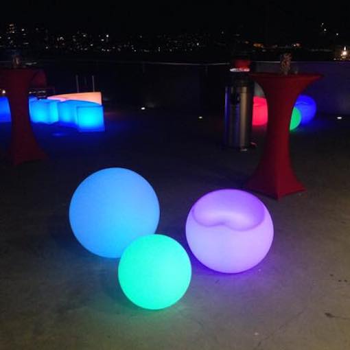 The Glow Sphere Chair hire is one of the latest additions to our glow furniture range. This funky chair offers a great alternative to the traditional seating options of glow cubes and glow curved benches. The glow sphere chair has a rounded look with a flat base for stability. The glow sphere chair hire will be sure to stand out at your event if you are going for a unique look.