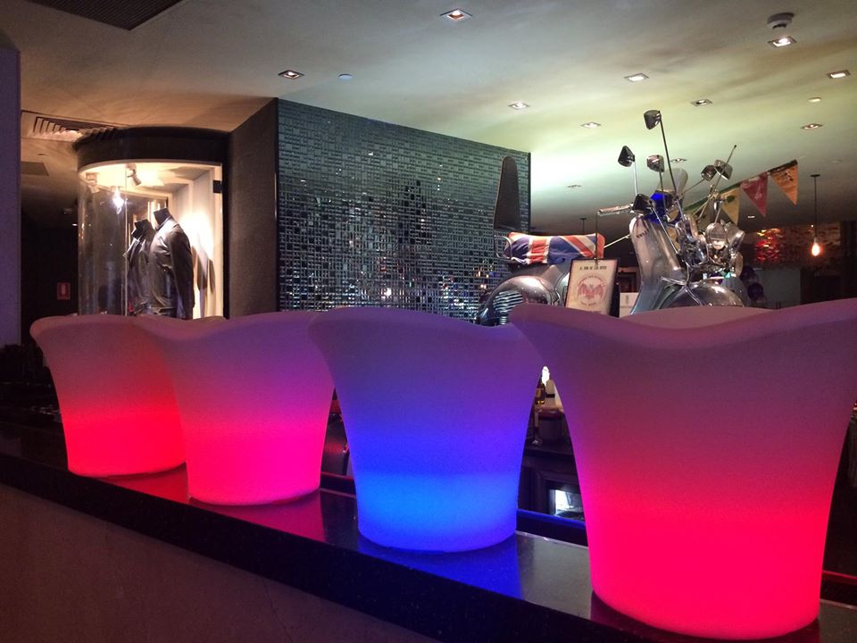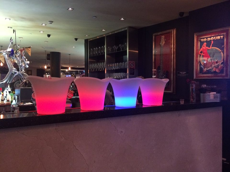 If you want to serve your drinks in style, then don’t go past our glowing ice buckets. They are great for placing wine, beer or non alcoholic drinks in. They can be placed on tables or drinks can be carried in to guests in the tubs by wait staff for that extra VIP feel. They come pre charged and give 8 hours of illumination. They also have a remote that allows you to change the colours.