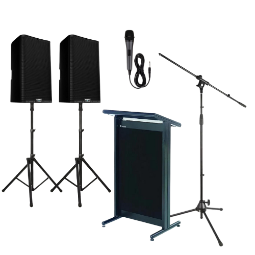 Our lecterns and speakers are the perfect solution for any event that requires a professional and clear delivery of speeches, presentations or lectures. Our lecterns are sleek and elegant, providing the perfect stage for your presenters to deliver their messages with confidence and authority.