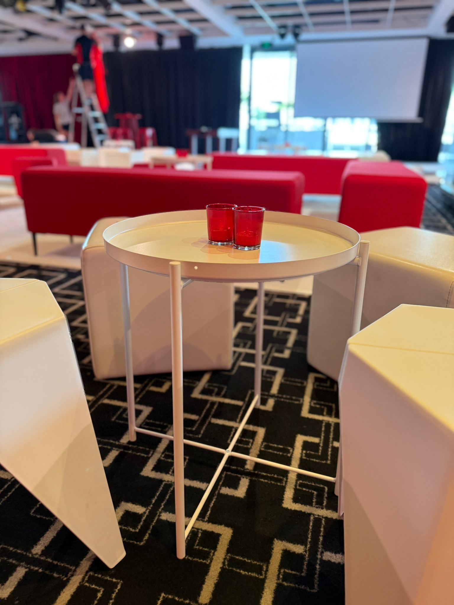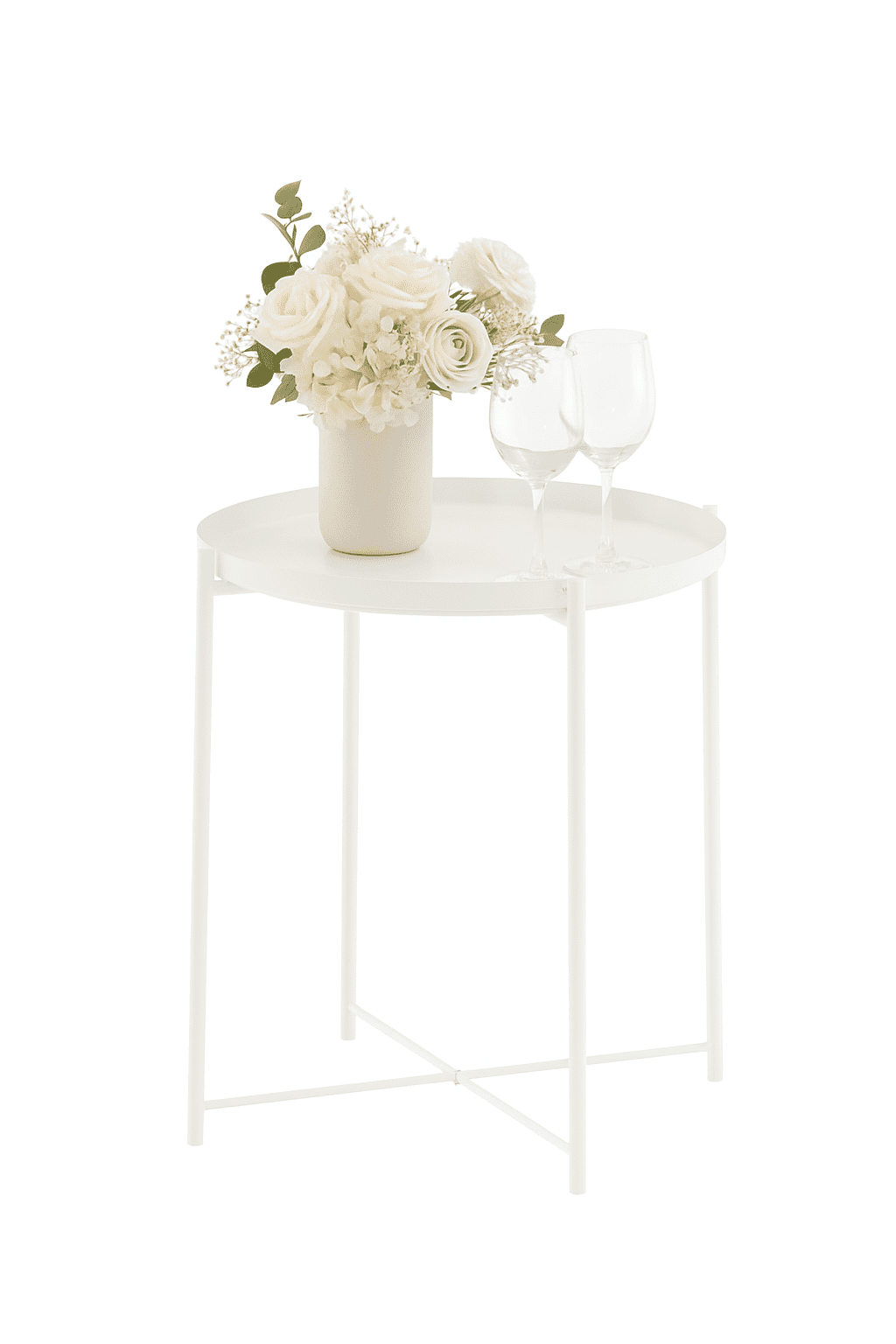 Add a modern, sleek touch to your Sydney event with the White Metal Tray Side Table from Event Hire Co. This table features a minimalist, all-black design perfect for cocktail lounges, corporate areas, or any function needing a contemporary edge. Its round top includes a crucial raised tray edge, ensuring drinks and small items stay secure and stable—a must-have for busy events. Durable and stylish, this side table is the practical and polished choice to complete your seating areas.